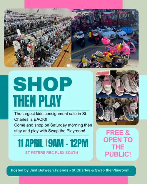 The largest kids' consignment sale in St. Charles is back! Join Swap the Playroom and Just Between Friends - St. Charles for a "Shop Then Play" event. Score amazing deals on kids' gear and then let the little ones burn off some energy in our dedicated play area. This event is free and open to the public!